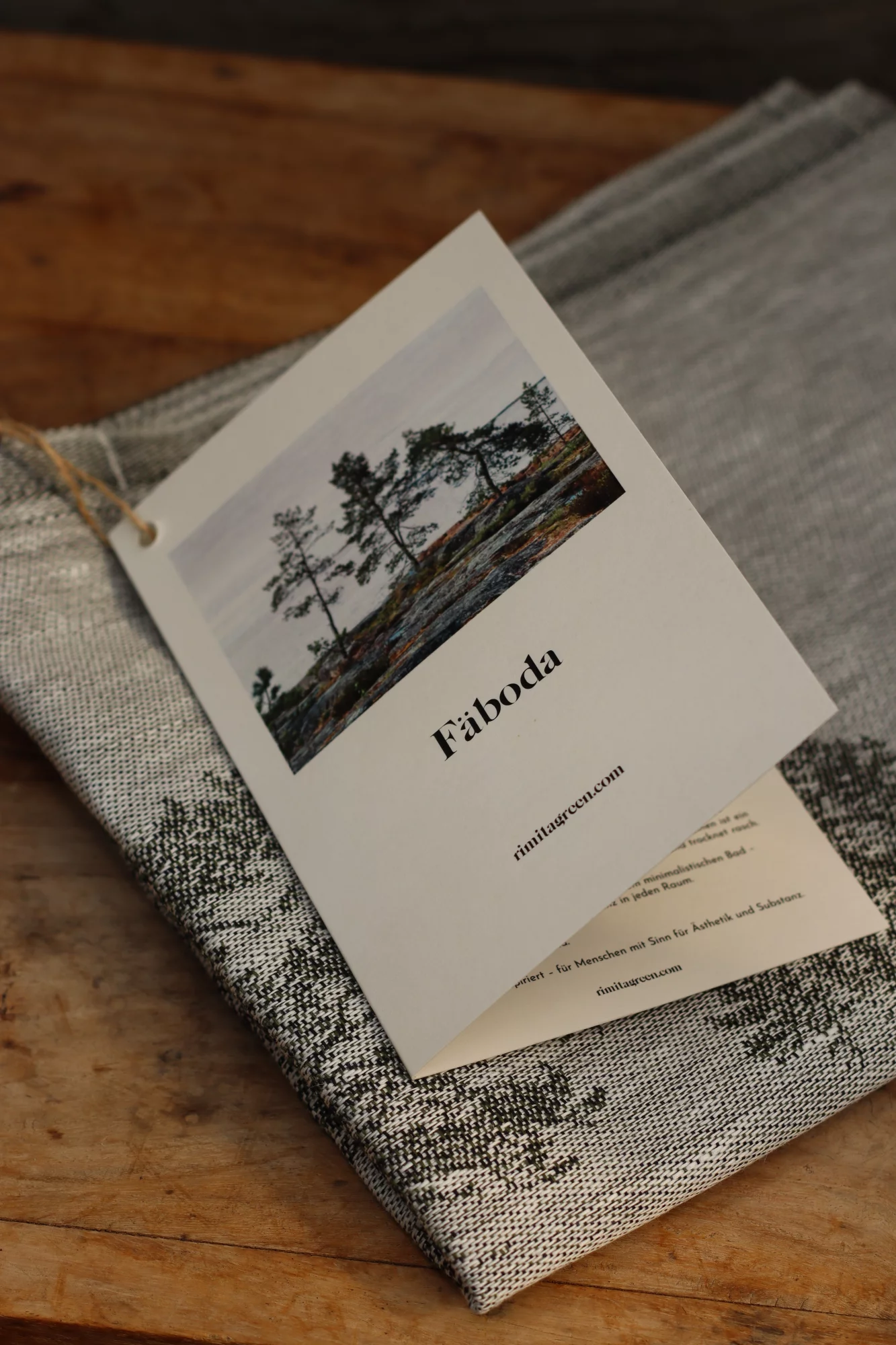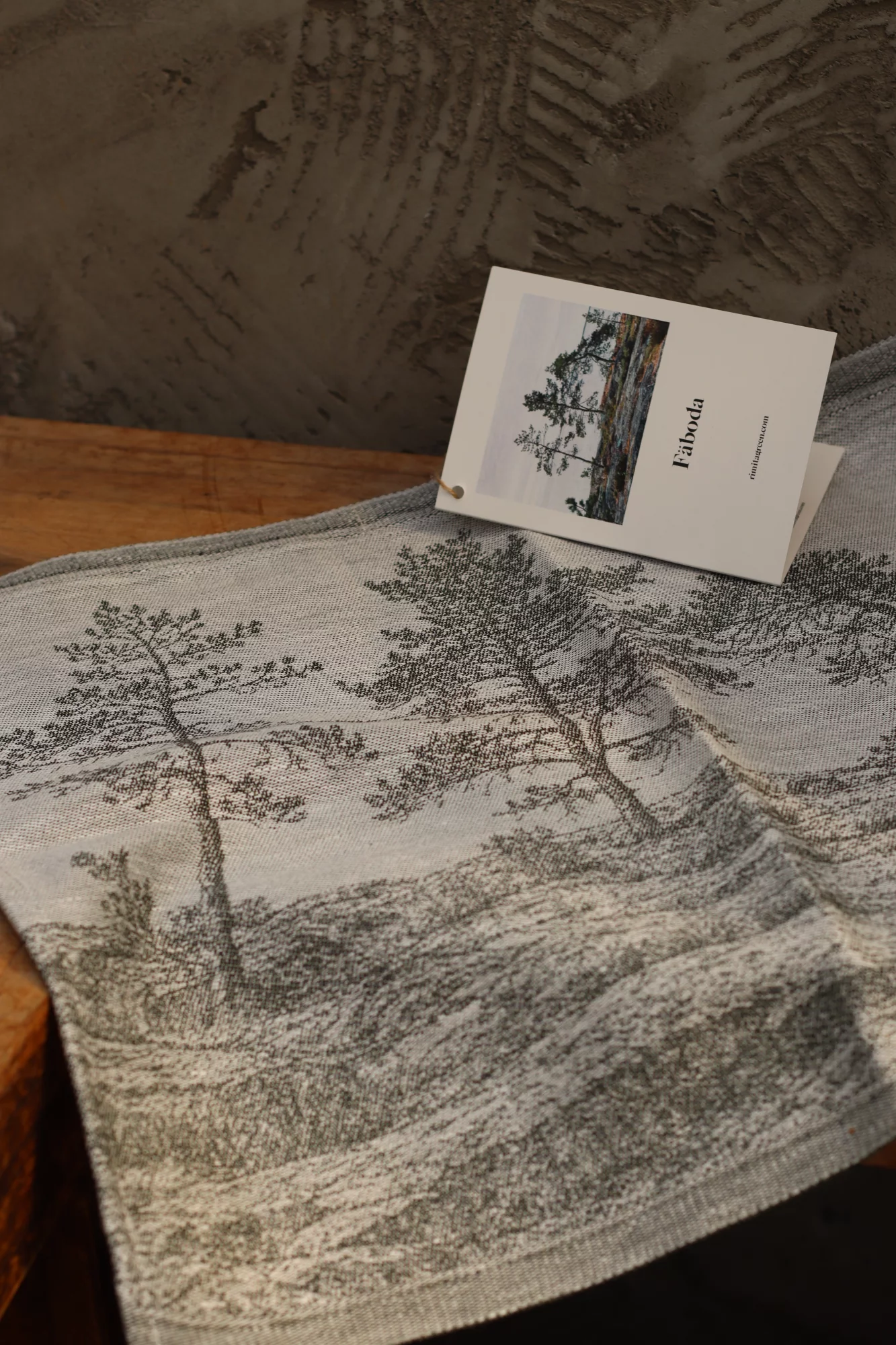 Fäbodan pellavapyyhe on saanut inspiraationsa Fäbodan kallioista ja mäntymetsistä. Täydellinen paikka rentoutua, vetää syvään henkeä ja antaa stressin huuhtoutua pois aaltojen mukana.