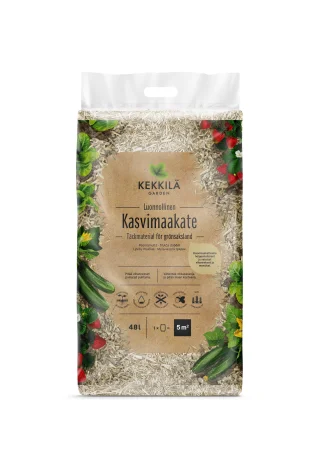 Kekkilä Kasvimaakate on puhdasta kuituhampun olkea. Kasvimaakate sopii kaikille satoa tuottaville kasveille kasvimaalla ja viljelylaatikoissa. Se sopii myös viljelyrivien välien kattamiseen sekä perennapenkkeihin. Palakoko 0–40 mm.