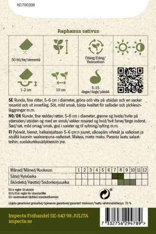 Pyöreät, hienot, halkaisijaltaan 5-6 cm:n juuret, ulkoapäin vihreät ja valkoiset ja sisältä kauniin vaaleanpuna-valkoiset. Makea, mieto maku. Parasta laatu salaatteihin, suolakurkkusäilykkeisiin jne.