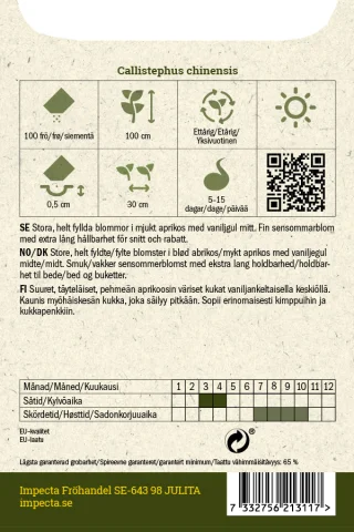 Suuret, täyteläiset, pehmeän aprikoosin väriset kukat vaniljankeltaisella keskiöllä. Kaunis myöhäiskesän kukka, joka säilyy pitkään. Sopii erinomaisesti kimppuihin ja kukkapenkkiin.