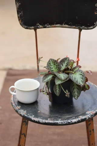 Koristeellinen huonekasvi samettisillä lehdillä.