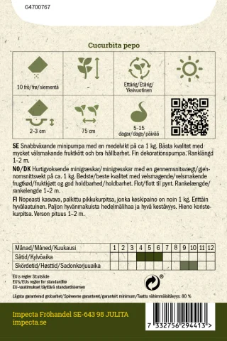 Nopeasti kasvava, palkittu pikkukurpitsa, jonka keskipaino on noin 1 kg. Erittäin hyvälaatuinen. Paljon hyvänmakuista hedelmälihaa ja hyvä kestävyys. Hieno koristekurpitsa. Verson pituus 1-2 m.