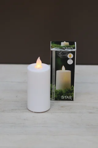 Realistinen muovivalaisin. Luo viihtyisä ja miellyttävän hehkun sekä sisällä tai ulkona.