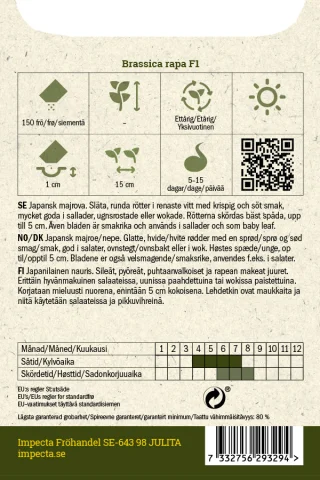 Japanilainen nauris. Sileät, pyöreät, puhtaanvalkoiset ja rapean makeat juuret. Erittäin hyvänmakuinen salaateissa, uunissa paahdettuina tai wokissa paistettuina. Korjataan mieluusti nuorena, enintään 5 cm kokoisena. Lehdetkin ovat maukkaita ja niitä käytetään salaateissa ja pikkuvihreinä.