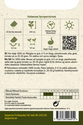 Perinnekasvi varhaiselta 1800-luvulta. Paljon keltaisia, 4-5 cm pitkiä, päärynänmuotoisia, makeita ja maukkaita tomaatteja (n. 20-30 g/hedelmä). Kasvihuoneisiin ja lämpimiin ulkotiloihin.
