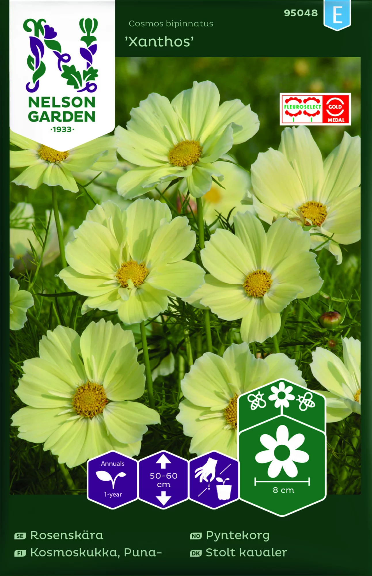 Erikoinen kosmoskukkalajike, jolla vaalean kullankeltaiset kukat. Jää normaalia kosmoskukkaa matalammaksi. Sopii ruukkuun ja kukkapenkkiin, kaunis leikkokukkkana. Lannoita niukasti, muuten kasvi kasvattaa lehtiä eikä kuki. Posta kuihtuneet kukat.