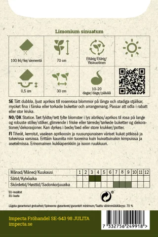 Tiheät, kerrotut, vaalean aprikoosin ja ruusunpunaisen väriset kukat pitkissä ja tukevissa varsissa. Erittäin kauniita niin tuoreina kuin kuivattuinakin kimpuissa ja asetelmissa. Erinomainen kukkapenkkiin ja isoon ruukkuun.