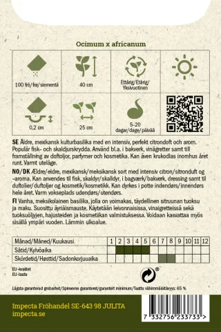 Vanha, meksikolainen basilika, jolla on voimakas, täydellinen sitruunan tuoksu ja maku. Suosittu äyriäismauste. Käytetään leivonnaisissa, vinaigretteissä sekä tuoksuöljyjen, hajusteiden ja kosmetiikan valmistuksessa. Voidaan kasvattaa myös sisällä ympäri vuoden.