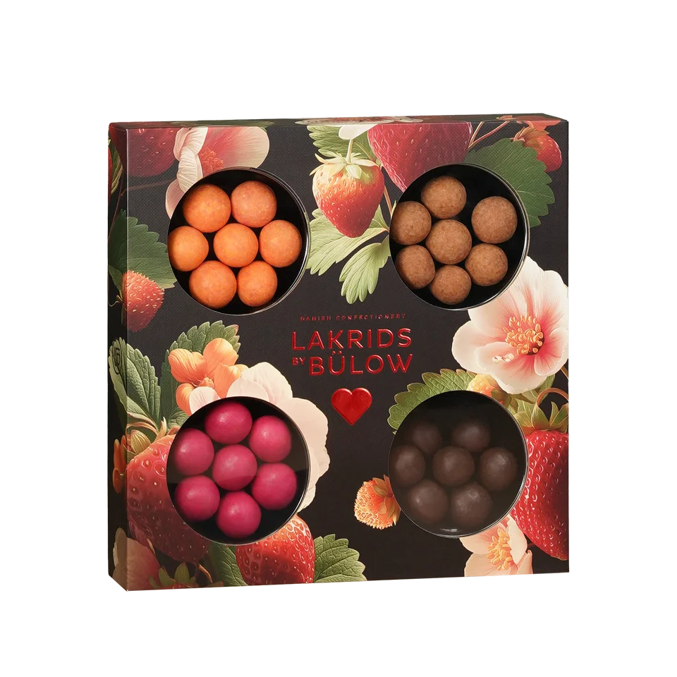 Ainesosat: 58% valkoinen, dulce-, maito- ja tummaa suklaata(EU) sokeri, kaakaovoi, maitojauhe, kaakaomassa, luonnolliset aromit, emulgointiaineet (sojalesitiini, lesitiini), herjauhe (maito), maitorasva), sokeri, riisijauho, melassi, inverttisokerisiirappi, glukoosisiirappi, 2% raakalakritsia (muu kuin EU), hedelmäjauhe (passiohedelmää, mansikoita, persikka (pakastekuivattua)), rapsiöljy, kaakaovoi, suola, pintakäsittelyaineet (karnaubavaha, sellakka, arabikumi), täysmaitojauhe, merisuolaa, luonnolliset aromit, dekstroosi, vaniljalla maustettu kermajauhe(kerma (sumutuskuivattua)), luontainen aromi) happo: omenahappo, väriaineet (rautaoksidi, kalsiumkarbonaatti, beetakaroteeni, punajuuri, karmiinin), salmiakkia, aikaloitu kaakao, emulgointiaineet (lesitiini, soijalesitiini), stabilointiaine: arabikumi. Valkoinen suklaata: kaakaota vähintään 26%, Dulce suklaata: kaakaota vähintään 23%, Maito suklaata: kaakaota vähintään 34%, Tumma suklaata: kaakaota vähintään 70%.