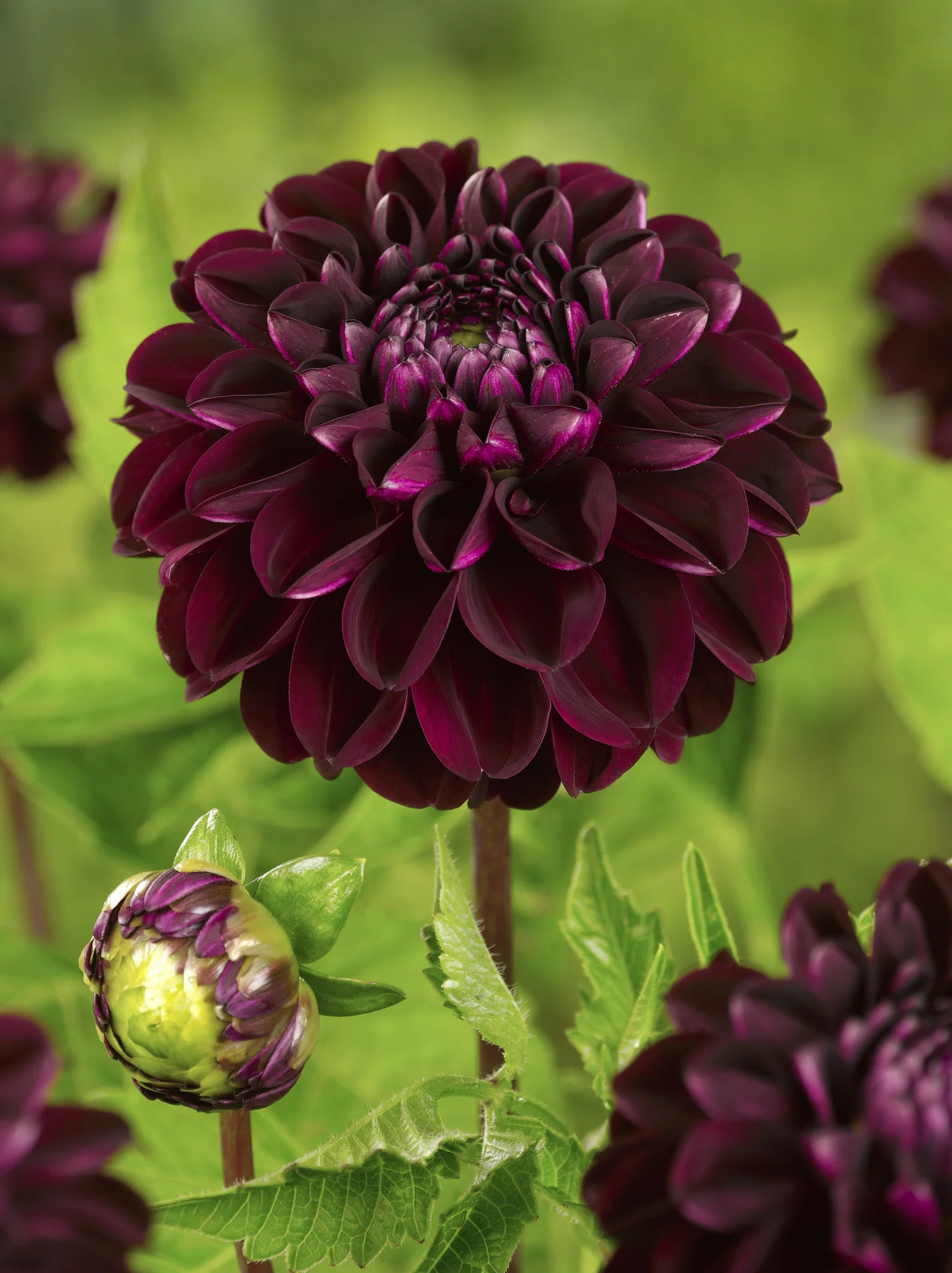 Vacker mörkröd bolldahlia. Blomstorlek ca 5-10 cm (XS)