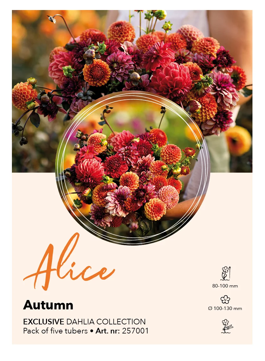 En verkligt exklusiv kollektion av fem dahlior med varma färger. Av dem kan du kan skapa en vacker höstaktig hjärtvärmande blombukett åt dig själv eller någon annan. Kollektionen innehåller: 'Spartacus', 'Bacardi', 'Sweet Fabienne', Laughing Lizza' och 'Brown Sugar'.