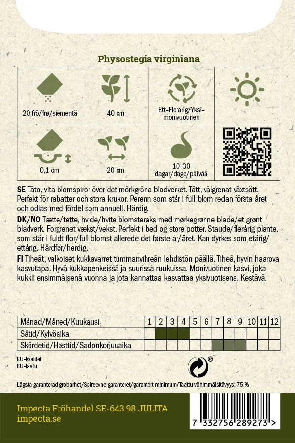 Täta, vita blomspiror över det mörkgröna bladverket. Tätt, välgrenat växtsätt. Perfekt för rabatter och stora krukor. Perenn som blommar första året.