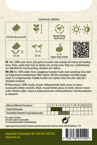 Från 1880-talet. Stora, ljust gröna huvuden med antydan till rodnad på bladkanterna. Släta, mjälla blad med en delikat, lite smörig smak. Tålig sort, snabbväxande och lättodlad för inomhusodling, drivbänk och växthus.
