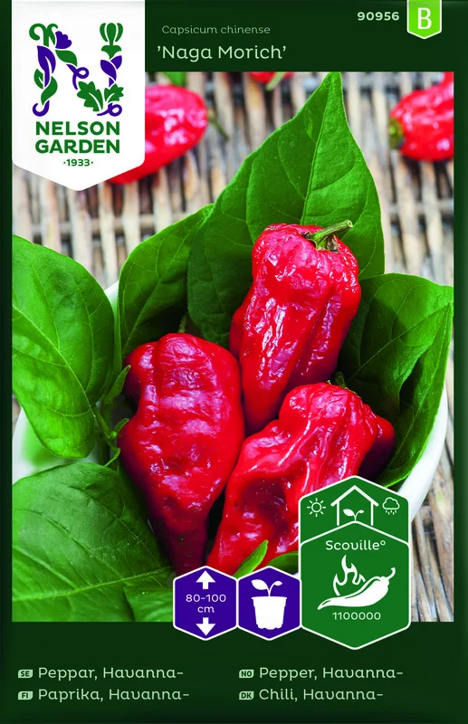 En mycket het chili, släkt med 'Dorset Naga'. Har en något söt, rökig smak och en hetta som utvecklas till intensiv. Passar till sås och marinad. Tvätta händerna ordentligt direkt efter kontakt med frukterna. Trivs bäst i sol och värme i kruka på altan, balkong eller i växthus. Gödsla och vattna regelbundet.