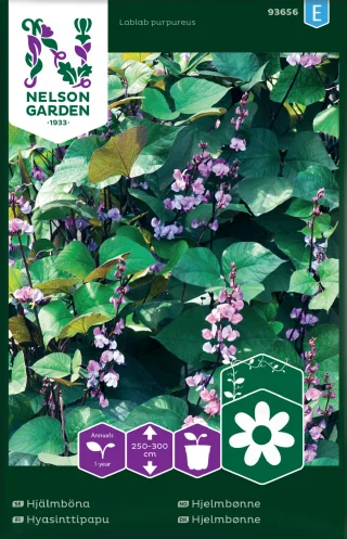 En fascinerande slingerväxt med rosalila, doftande blommor samt dekorativa, mörkt purpurfärgade baljor (kan ätas kokta). Utmärkt spaljéväxt.