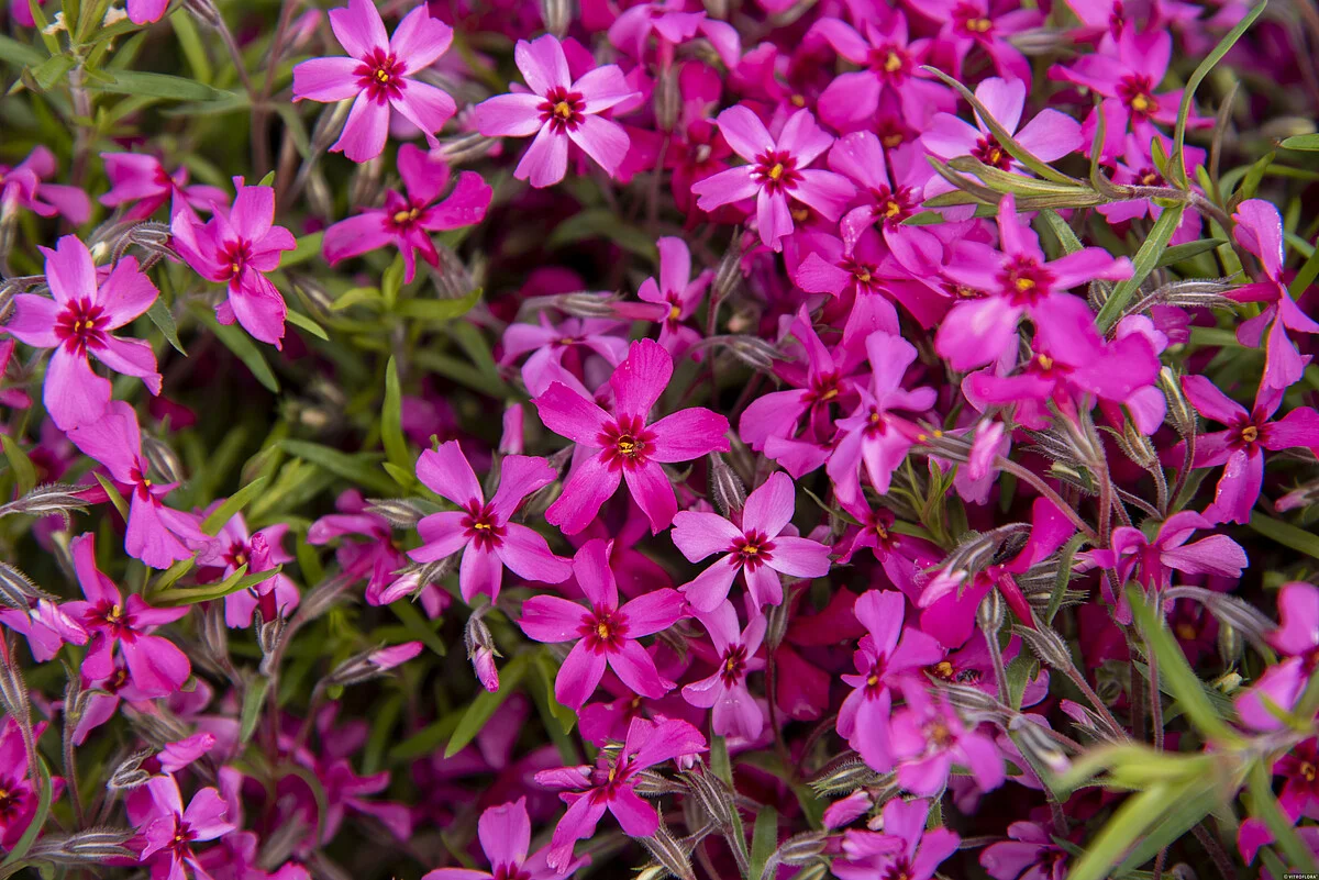 Phlox subulata 'Atropurpurea' är en lågväxande och marktäckande vårflox som bjuder på ett färgsprakande flor av djupt purpurröda till rödvioletta blommor under april och maj. Sorten bildar täta, vintergröna mattor av barrlika blad, vilket gör den idealisk för stenpartier, sluttningar, murkrön eller som färgglad kantväxt. Trivs i full sol och väldränerad, gärna sandig jord. En torktålig och lättskött perenn som ger stark vårfärg och struktur i trädgården.