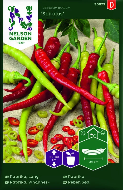 Långa slanka frukter, ljusgröna som omogna och röda som mogna. De skördas i vilket mognadsstadium man vill. En bra sort att pickla då frukten håller sig fast och krispig. Odlas i växthus eller i skyddat läge ute. Trivs i näringsrik, väldränerad jord. Vattna regelbundet.