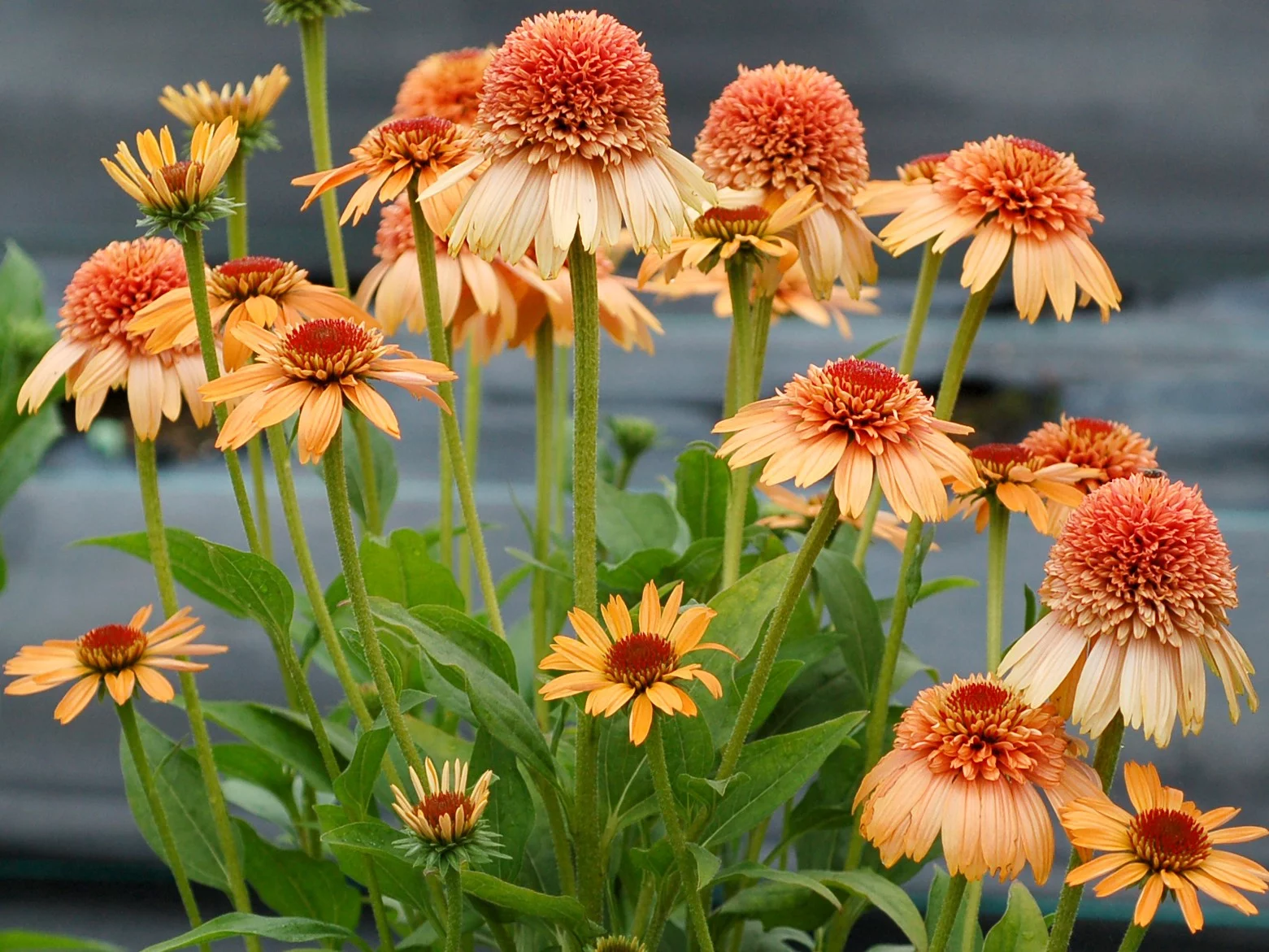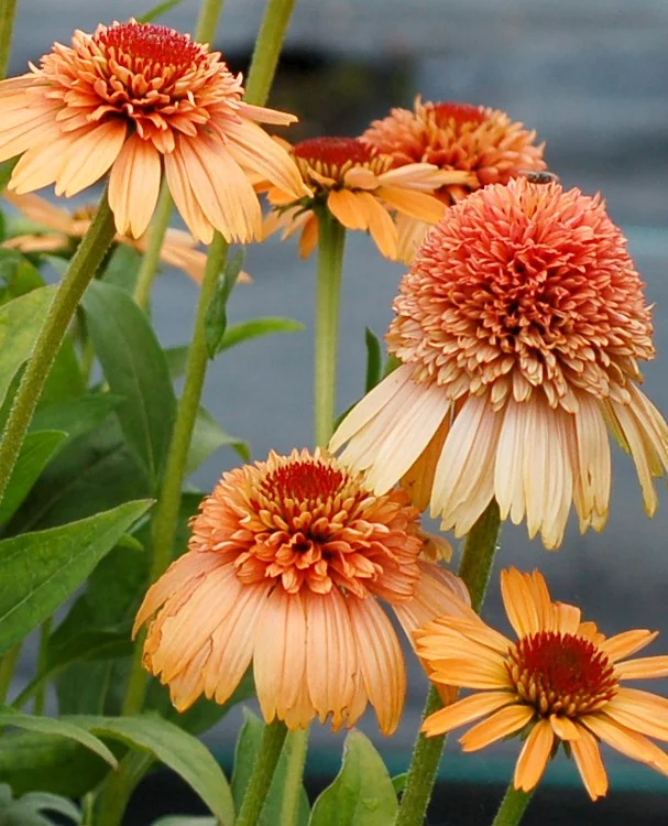 Echinacea 'Supreme Cantaloupe' är en iögonfallande solhatt med stora, fyllda blommor i mjuk melonfärg – likt cantaloupe. De välformade blommorna har ett tätpackat centrum och breda yttre kronblad som skiftar från varmt aprikos till laxrosa. Blommar från juli till september och drar till sig fjärilar, bin och andra pollinatörer. Den stadiga och upprätta växtformen gör den perfekt för rabatt, kruka eller som snittblomma. Lättodlad och torktålig perenn som trivs bäst i full sol och väldränerad jord.