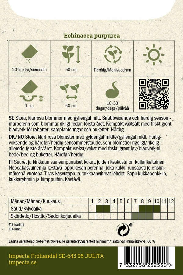 Stora, klarrosa blommor med gyllengul mitt. Snabbväxande, härdig perenn som blommar första året. Kompakt växtsätt för rabatter, samplanteringar och buketter.