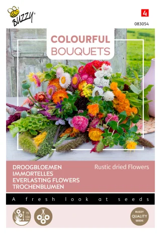 En mångsidig blandning av sommarblommor som passar att torka. Så fröna direkt i rabatten eller vald odlingsplats. Kratta lätt över och se till att fröna är jämnt fördelade över området. Denna blandning är rik på många arter som är lämpade för torkning.Du kan njuta av en bukett torkade blommor i många år.