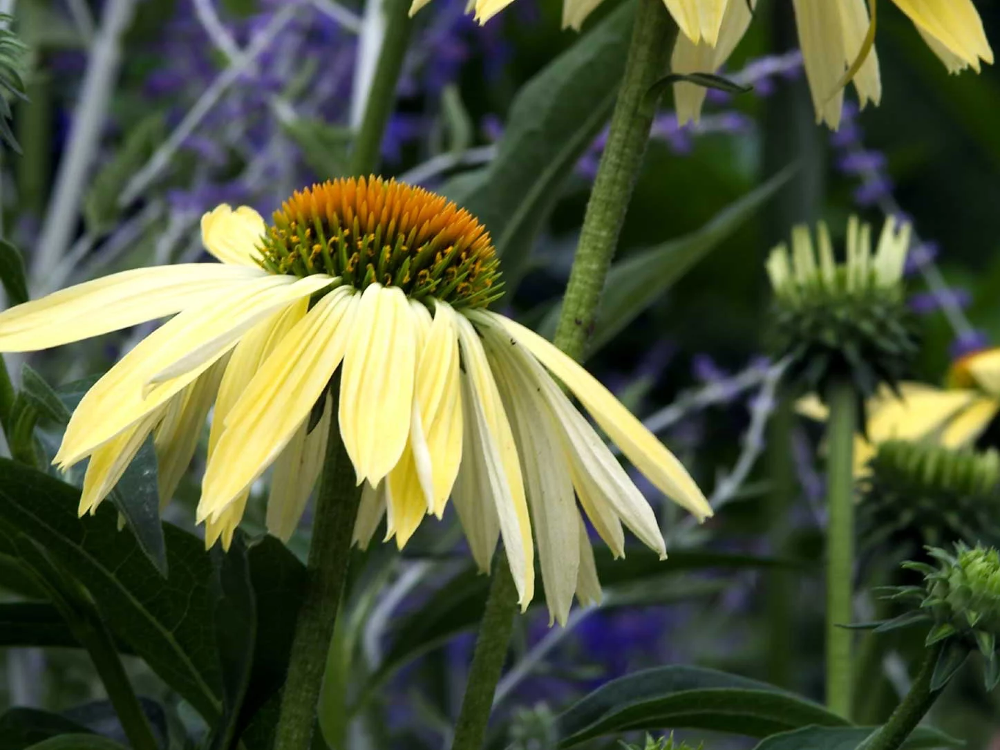 Echinacea purpurea 'Sunrise' är en förädlad solhatt med mjukt citrongula kronblad och en grönaktig mitt som senare övergår i gulbrun. Den blommar rikligt från högsommaren och långt in på hösten. Blommorna är stora och doftande, vilket gör den extra attraktiv för pollinerare som fjärilar och bin. Den upprätta växtsättet gör den utmärkt i både rabatt och snitt. Trivs bäst i soligt läge med väldränerad, näringsrik jord. Torktålig, lättskött och härdig.