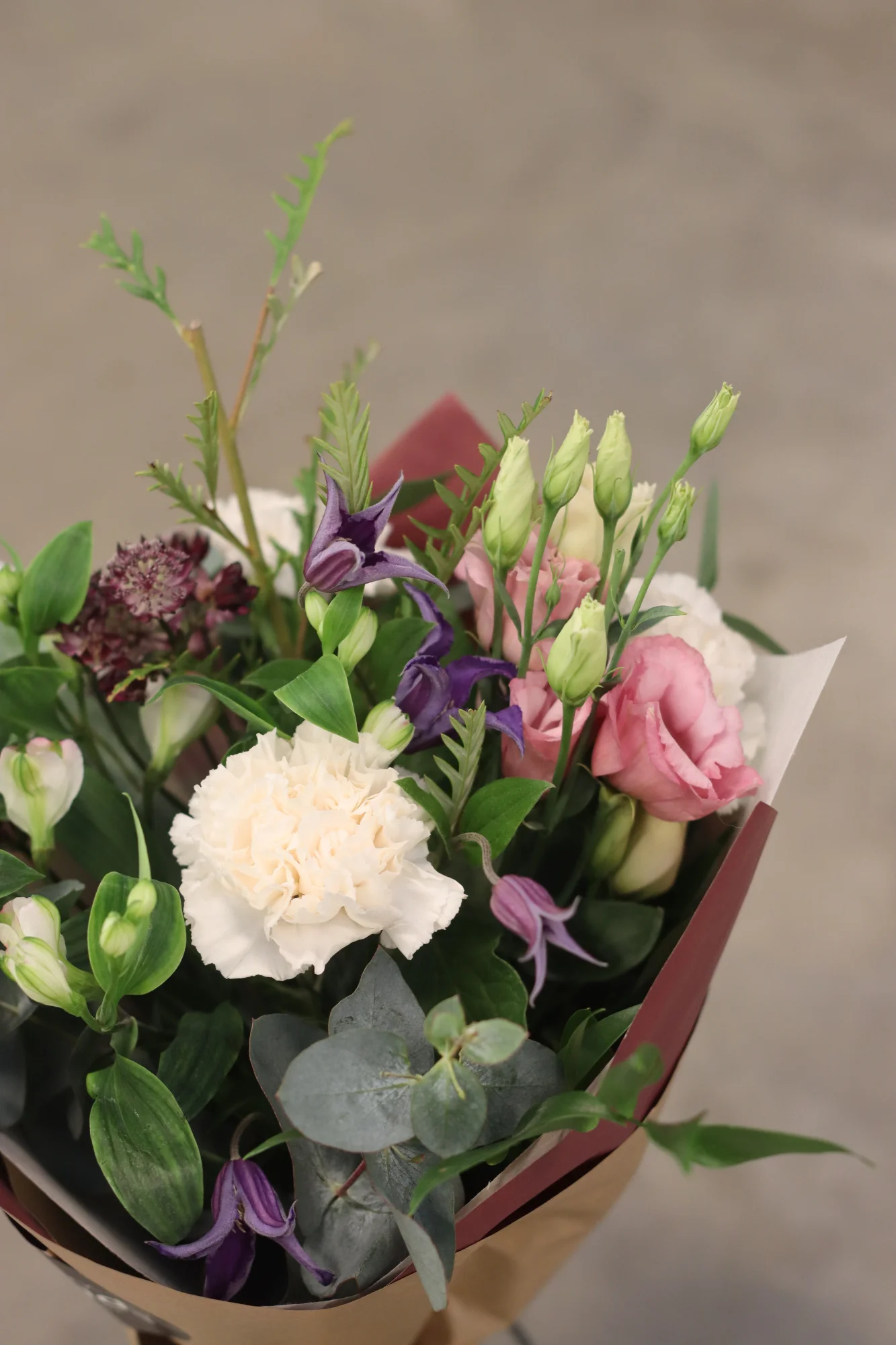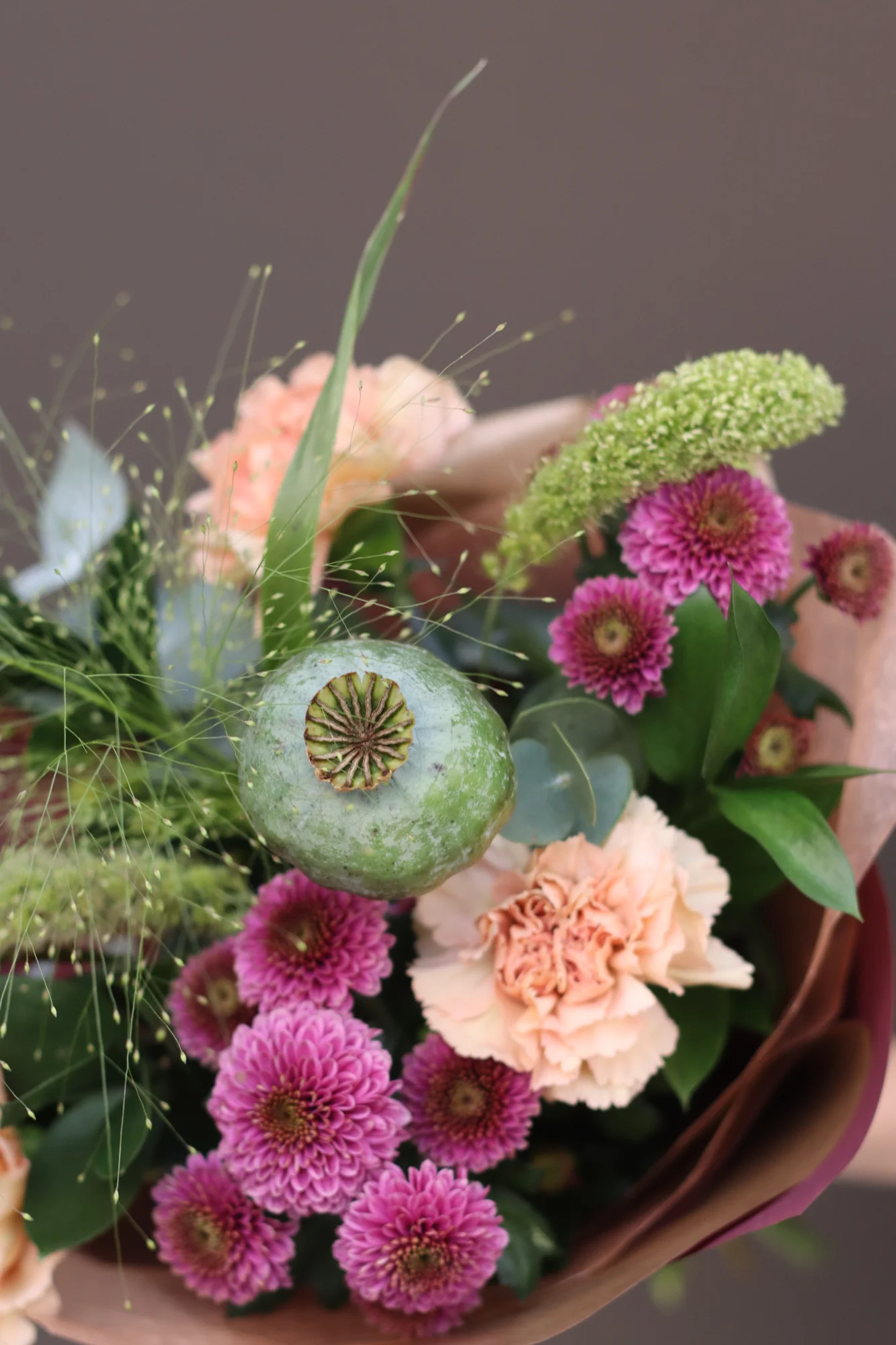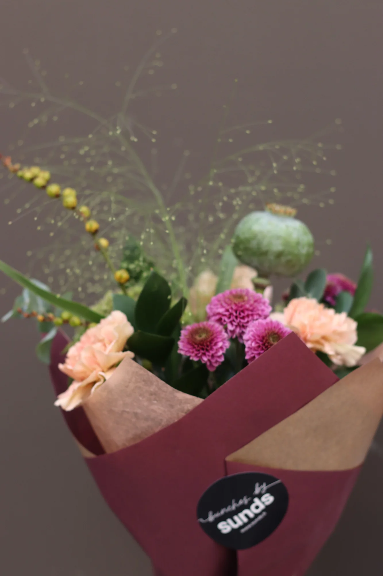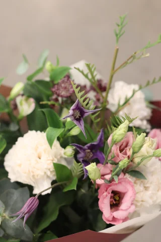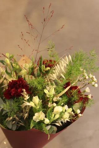En handbunden, säsongsbetonad bukett som varierar varje vecka med fräscha blommor av högsta kvalitet. Perfekt som gåva eller för att lysa upp vardagen hemma. Varje bukett är unik och anpassad efter säsongens bästa blommor.