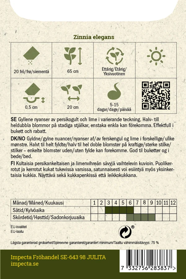 Gyllene nyanser av persikogult och lime i varierande teckning. Halv- till heldubbla blommor på stadiga stjälkar, enstaka enkla kan förekomma. Effektfull i bukett och rabatt.
